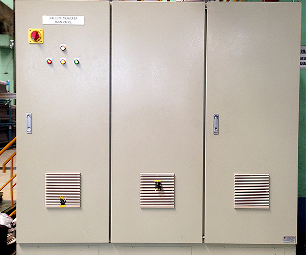 The system is built to accommodate the needs of changing and queing pallete (container) in a fast manner with precise positioning so that the operators can work effectively and ergonomically. The system uses five 50kW induction motors, driven with Yaskawa`s A1000 series drive to actuate five independent conveyors. In conjunction to the drives, the system also uses photo electric sensors, laser distance measuring sensors, rotary encoders from IFM to make sure it can fulfill the needs of precise positioning.